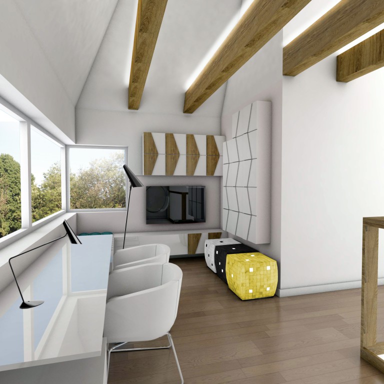 ARANŻACJA ANTRESOLI SPEŁNIAJĄCEJ FUNKCJĘ DODATKOWEJ PRZESTRZENI DZIENNEJ DO ZABAW I BIURA